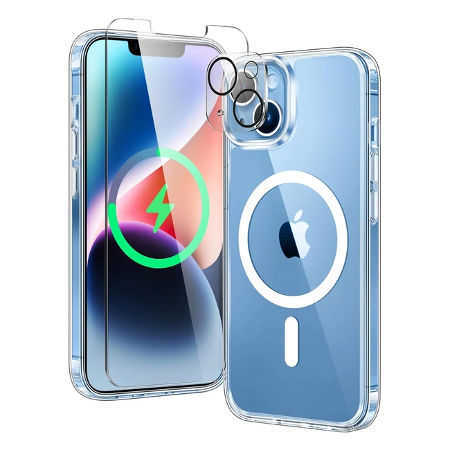 -5%Coque magnétique militaire pour iPhone 13/14 - Forte attraction magnétique - Compatible avec chargeurs magnétiques et sans fil - Cristal clair et jamais jaune - Protection de 10 pieds - Appareil photo surélevé et protection d'écran - Compatibilité et support professionnel
