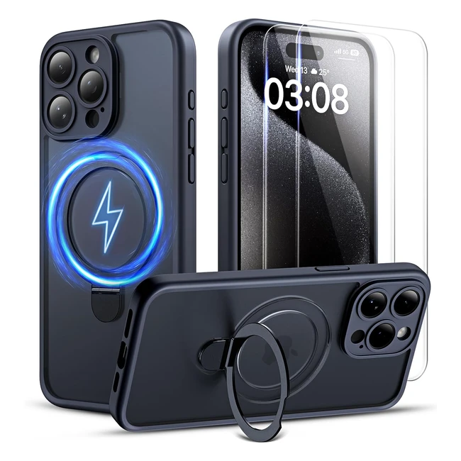Coque magnétique iPhone 15 Pro avec support invisible et protection de l'objectif - Noir