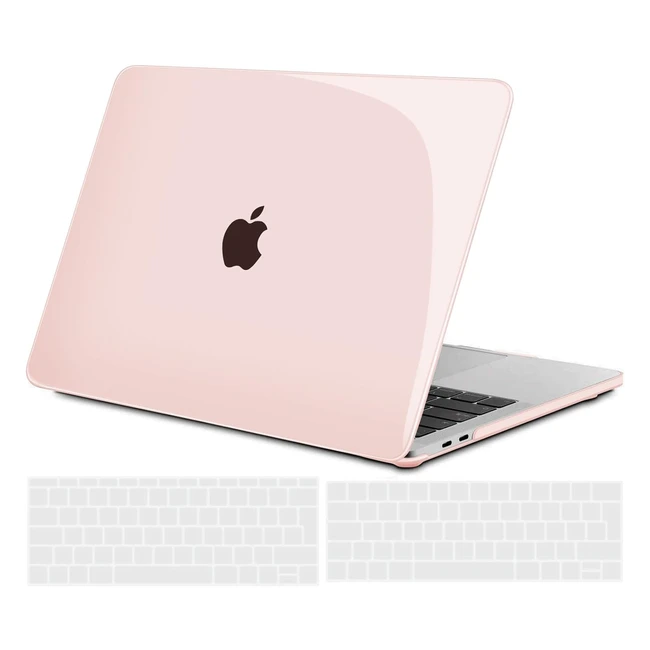 Coque Tecool pour MacBook Pro 13 pouces 2022-2016, M2/M1 A2338/A2289/A2251/A2159/A1989/A1706, Protection mince en plastique et clavier AZERTY en silicone, Rose craie