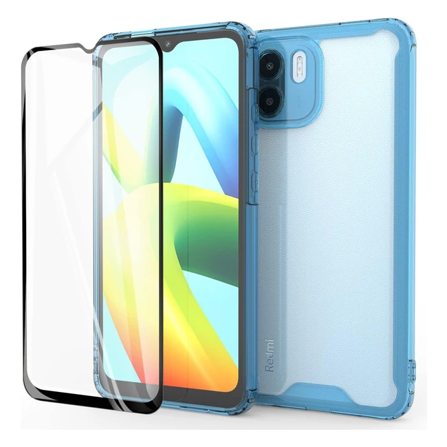 Coque transparente pour Xiaomi Redmi A1/A2 4G avec protection en verre trempé - Bleu