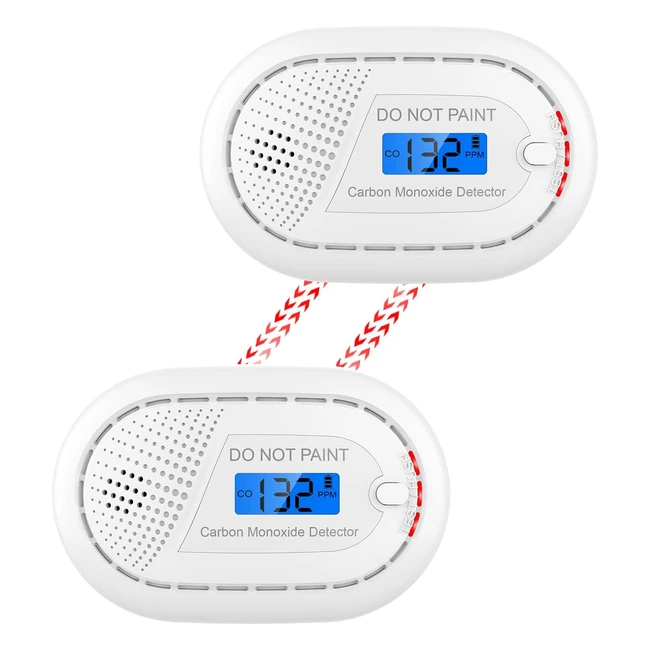 CPVan Carbon Monoxide Detector 10 Year Sealed Battery CO Alarms Home Safety Interlinked CO Alarm Digital Display EN 50291 SM11R Models 2 Pack