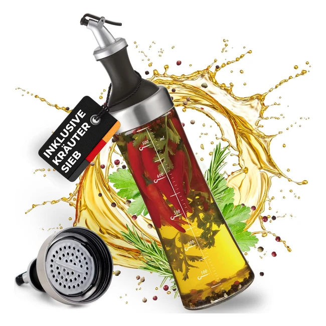 Cucino Glasflasche mit Kräutersieb 570ml - Praktische Ölflasche für tropffreies Dosieren