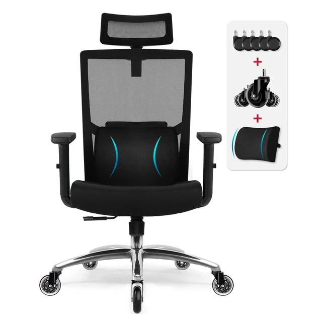 Daccormax Bürostuhl Ergonomisch Bequemer Mesh Chefsessel Verstellbare Lordosenstütze Kopfstütze Armlehnen Schaukelfunktion Schreibtischstuhl Computerstuhl Homeoffice Stuhl bis 200 kg