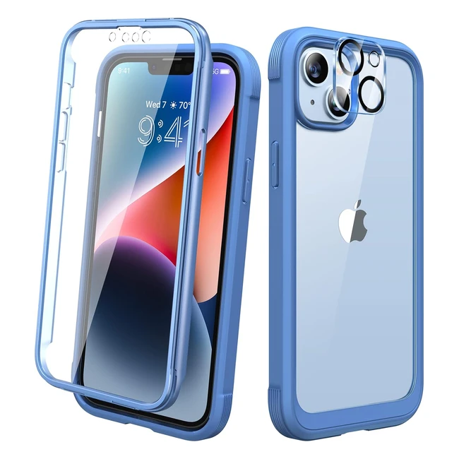 Diaclara iPhone 14 Case 360 Full Body Rugged Case with Touch Screen Protector - Elegant Blue