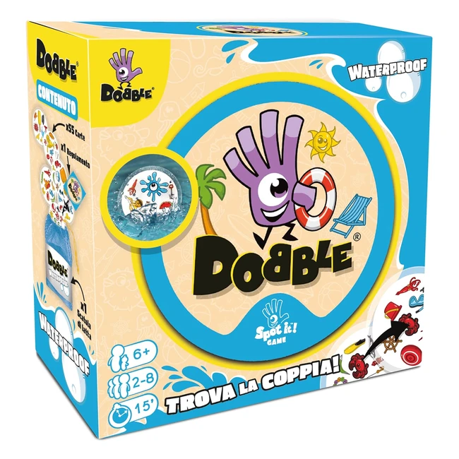 Dobble Waterproof Pack - Gioco di Carte Eco-sostenibile - Resistente all'Acqua - 25 Giocatori - Edizione in Italiano