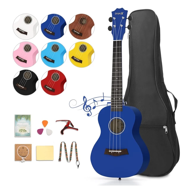 Dripex Blue Concert Ukulele 23 Inch - Beginner Kit Included! #QualityCraftsmanship #FullAccessories #ConvenientCarrying