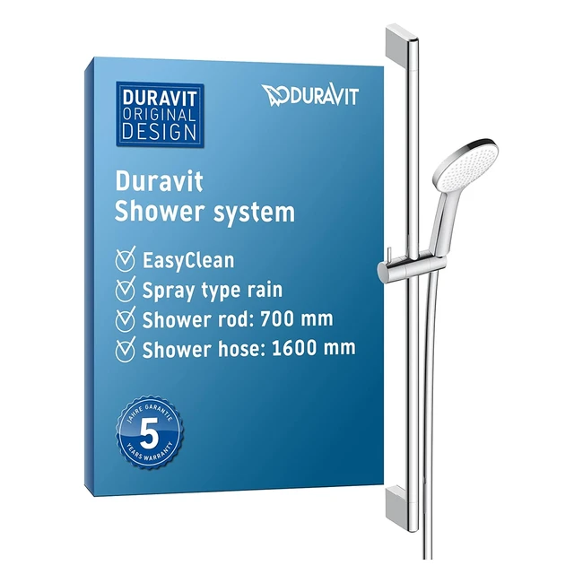 Duravit Universal Système de Douche - Set de Douche avec Jet Rain 700mm - Hauteur Réglable - Pommeau de Douche Flexible - Protection Antitorsion