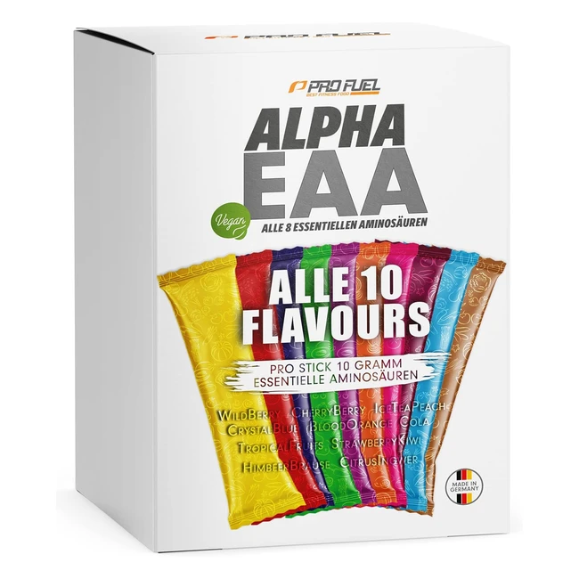 Entdecken Sie mit diesem Probierpaket alle 10 Geschmacksrichtungen unserer AlphaEAA-Getränke! Das Mixpaket enthält eine Probe oder eine volle Portion von je 14 g jeder der 10 Geschmacksrichtungen. Mit dem vielfältigen Probierset können Sie bei jedem Workout eine neue AlphaEAA-Geschmacksrichtung genießen. Vergleichssieger 2021: Wir sind stolz darauf, von Vergleich.org als Vergleichssieger 07/2021 in der EAA-Pulver-Kategorie gewählt worden zu sein. Der besonders hohe Gehalt an essentiellen Aminosäuren, die vielfältige Geschmacksauswahl und dass unsere AlphaEAAs zu 100 % vegan sind, wurden positiv hervorgehoben. Was sind EAAs? EAA ist die Abkürzung für essentielle Aminosäuren (Essential Amino Acids). Dies ist die Gruppe von 8 essentiellen Aminosäuren, die der Körper nicht selbst produzieren kann: Leucin, Isoleucin, Valin, Lysin, Threonin, Methionin, Phenylalanin und Tryptophan. Unsere AlphaEAAs sind eine erfrischende und leichte Alternative zu einem cremigen Proteindrink. Optimiertes EAA-