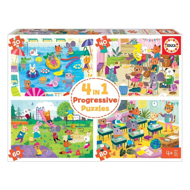 Educa Puzzles Progresivos Infantiles 4 en 1 - 20 40 60 80 piezas - A partir de 4 años - Ref. 18904