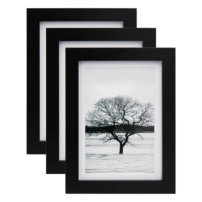 Egofine 7x5 Picture Frames Set of 3 - Solid Wood, Matted for 4x6 & 3.5x5, Tabletop & Wall Mounting
