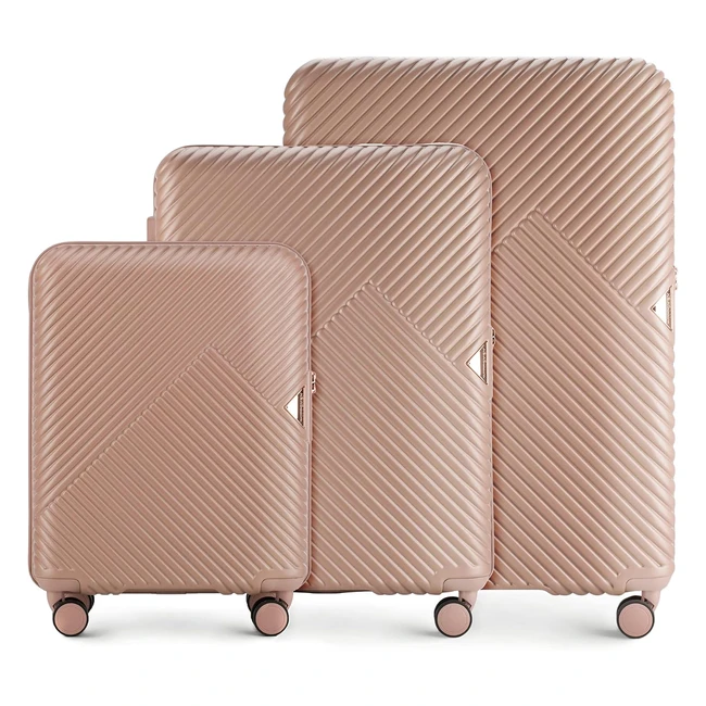 Ensemble valise trolley Wittchen 3 pièces, coque rigide en polycarbonate, serrure combinaison TSA, rose