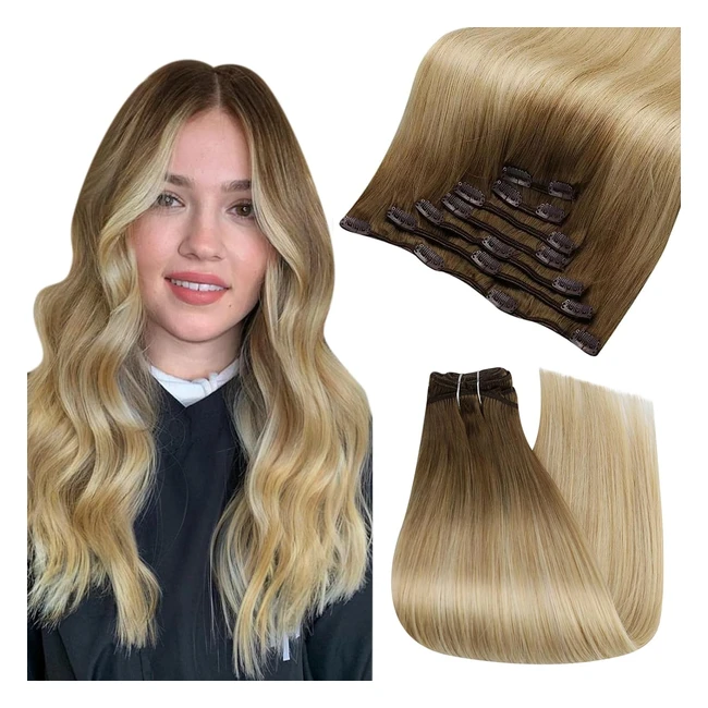 Estensioni capelli umani Fshine marrone castagno ombre biondo mix platino 24 pollici