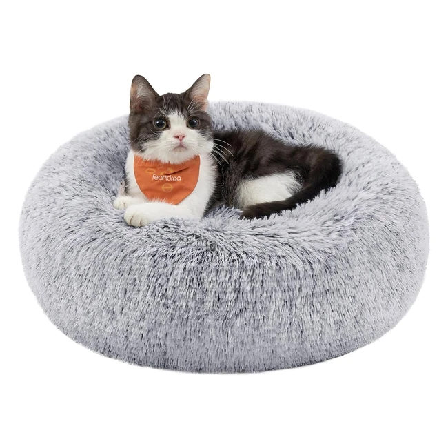 Feandrea Dog Bed Donut Cat Bed Fluffy Calming Pet Bed 40 cm Grey PGW036G01