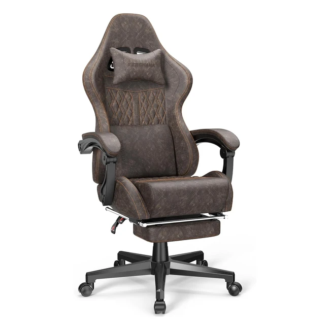 Ferghana Sedia Gaming Ergonomica con Poggiapiedi Regolabile - Supporto Lombare - Pelle PU - Marrone