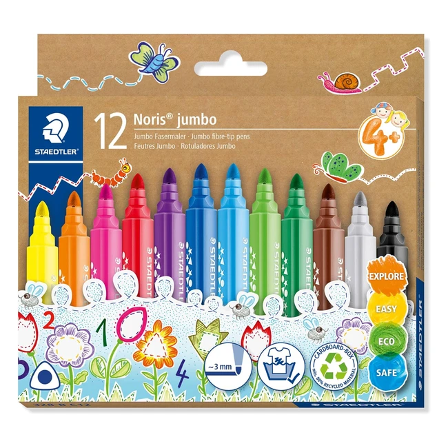 Feutres de coloriage Staedtler Noris Jumbo 328B-C12 - Pointe large 3mm - Etui carton 10 feutres assortis