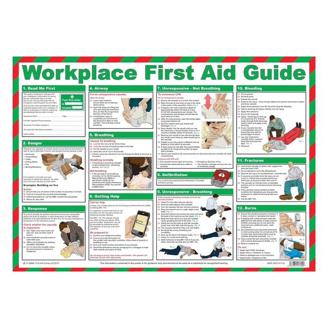 First Aid Guide Poster - Safety First Aid Group - Laminated - 59x42cm - Lifesaving Instructions