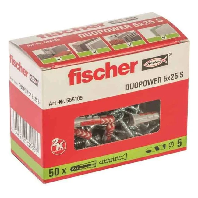 Fischer Duopower 5 x 25 S Universaldübel mit Sicherungsschraube - 2Komponenten-Dübel für Beton, Ziegel, Stein, Gipskarton uvm.
