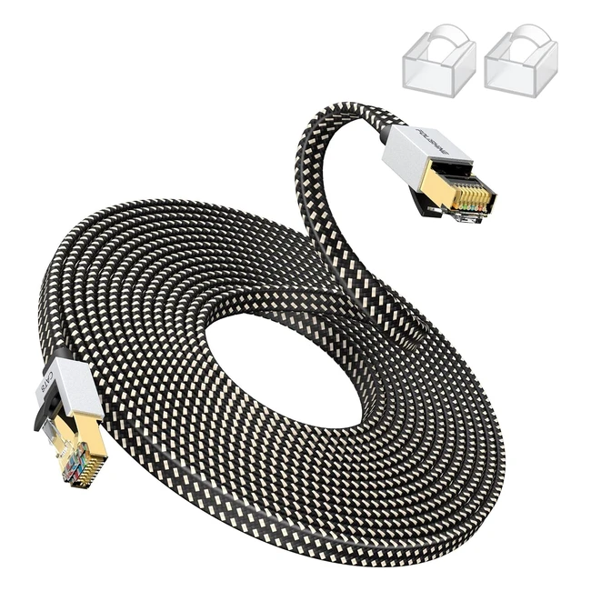 Folishine Cat8 Ethernet Cable 25m | High Speed Flat Gigabit RJ45 LAN Network Cable | 40Gbps 2000MHz | Switch Router Modem Patch Panel PC
