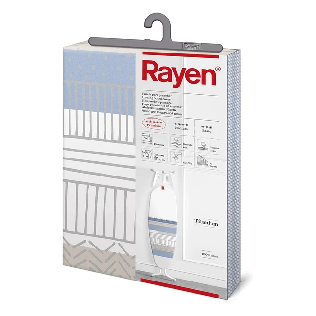 Funda Tabla de Planchar Rayen Universal - Ajuste Easyclip - 4 Capas Espuma Muletón - 100% Algodón Calidad Titanium - Medida 130x47 cm