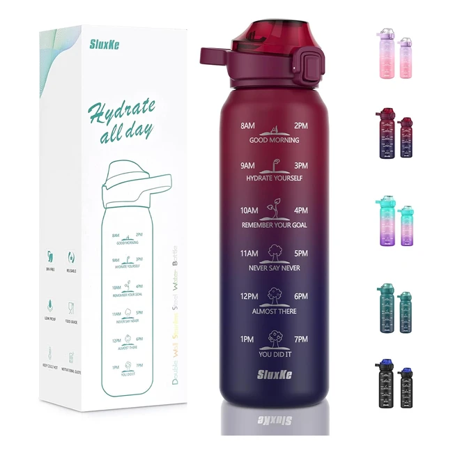 Gourde isotherme 1L SLUXKE 1810 inox avec marquage de temps - Sans BPA - Sport Voyage
