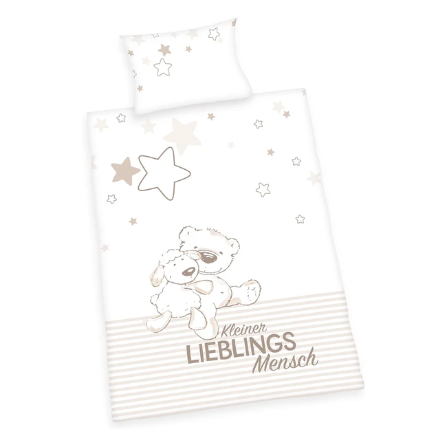 Herding Baby Best Bettwäsche Set mit Kleiner Lieblingsmensch Lieblingsperson Druck, Baumwolle, Referenznummer: [insert reference number], Atmungsaktive Kinderbettwäsche mit niedlichem Schaf- und Bärenmotiv