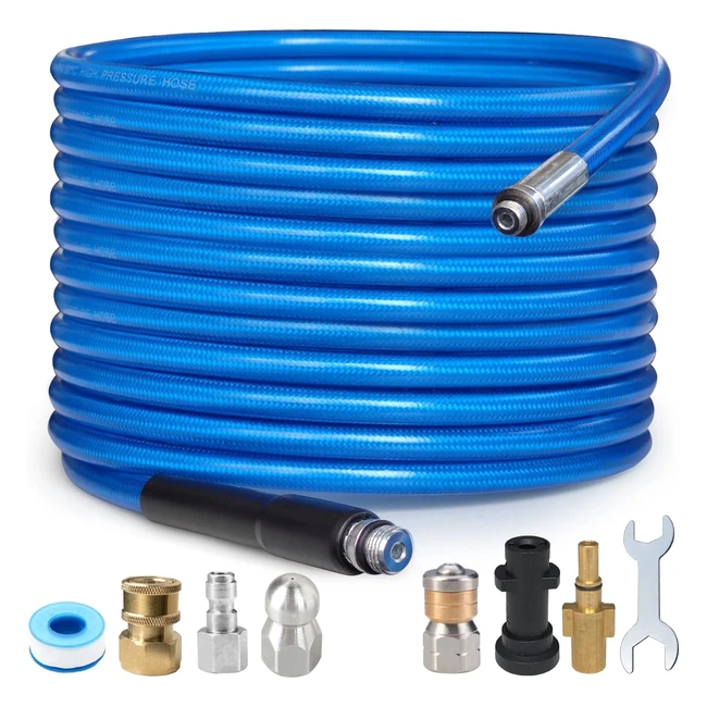 -20%Wide application pressure hose for cleaning cars, motorcycles, floors, windows, driveways, roofs, and more. High-quality sewer jetting hose with inner tube reinforcement and cover. Maximum working pressure 5800 PSI. Clear blockage button nose nozzle for effective cleaning. Rotating nozzle with 3 rear jets at 33 degrees. Customer service available for assistance.