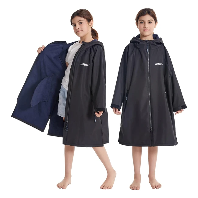 HITurbo Kids Waterproof Changing Robe - Windproof & Warm Coat with Fleece Lining