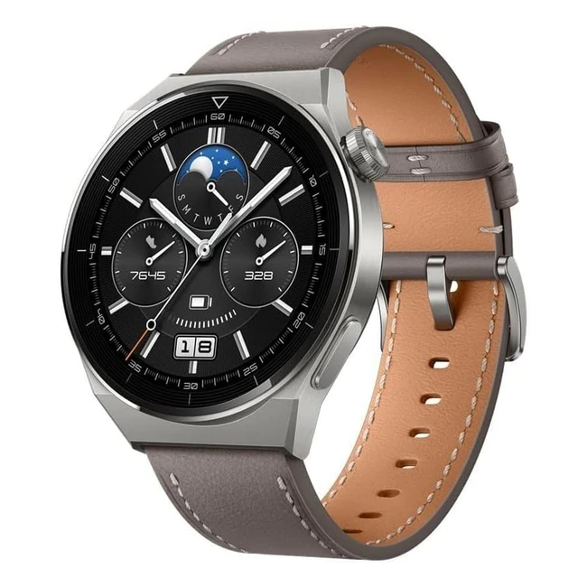 Huawei Watch GT 3 Pro - Smartwatch 46 mm de titanio, esfera de zafiro, monitorización de saturación de oxígeno, frecuencia cardíaca, larga duración de batería, correa de cuero gris