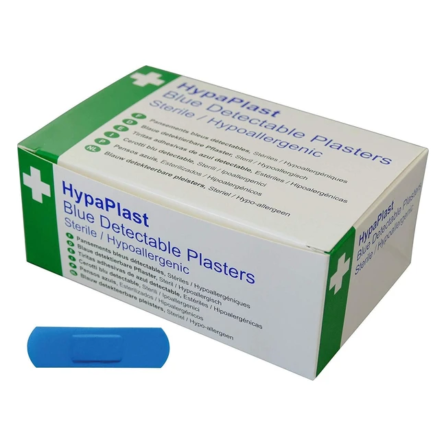 -15%Grab this pack of 100 Hypaplast Blue Visually Detectable Plasters with strong hypoallergenic adhesive, washproof material, individually wrapped sterile blue catering plasters. Easily detectable in kitchen and catering environments, these plasters are a must-have!