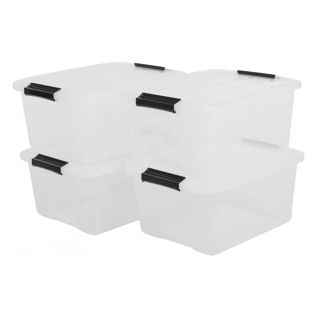 Iris Ohyama 4er-Set Aufbewahrungsboxen 15L mit Clips, stapelbar, Top Box TB15