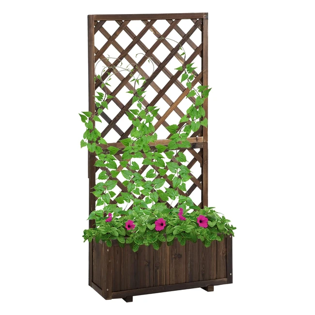 Jardinière en bois de pin de jardin Outsunny 725 x 315 x 1495 cm avec treillis pour plantes grimpantes et lit surélevé - finition carbonisée