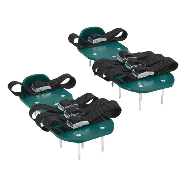 Juskys Rasenbelüftungsschuhe mit Stahl-Nadeln, Riemen, Rasenbelüftung, universelle Größe, platzsparend, Nagelschuhe als Rasenbelüfter