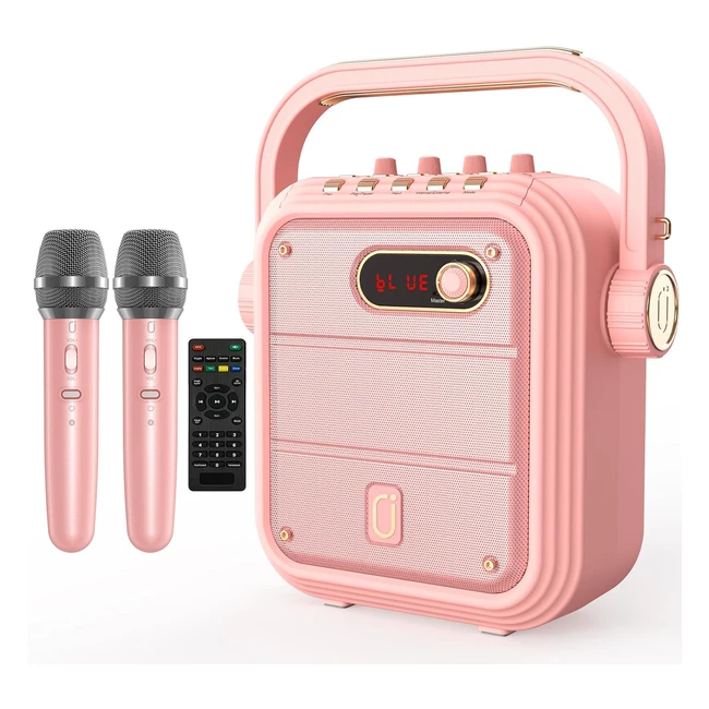 JYX TX02 Karaoke Machine with 2 Wireless Mics - Pink Speaker - Vocal Cut - Bluetooth PA System