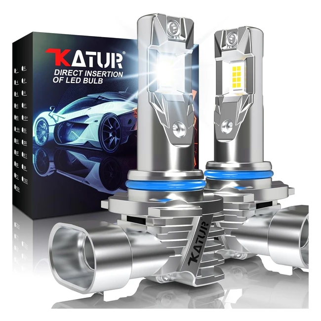 Katur Ampoule HIR2 LED 16000LM 6000K Blanc 500 Lumineuses 9012 Voiture Anti Erreur Canbus Plug and Play