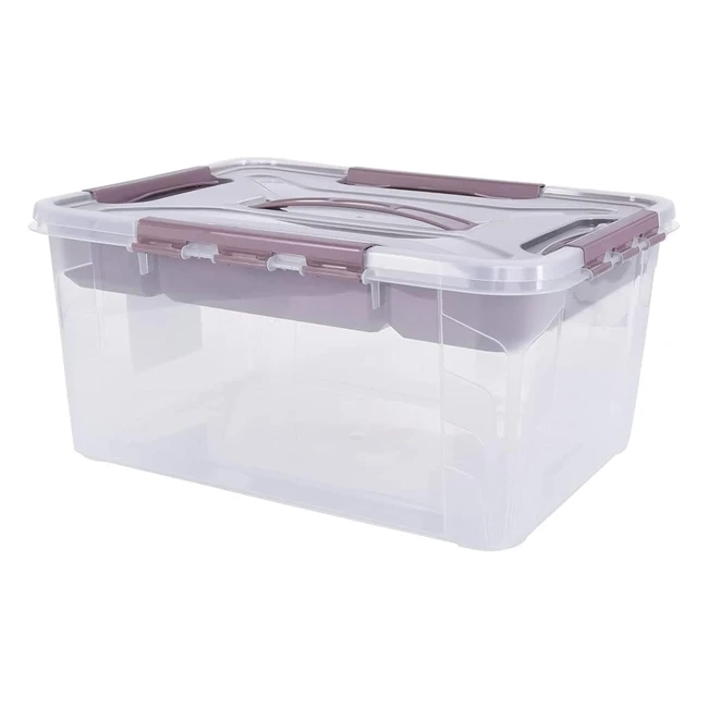 keeeper Huberthilda Aufbewahrungsbox mit Deckel und Einsatz 39 x 29 x 18 cm 153 l transparent-taupe