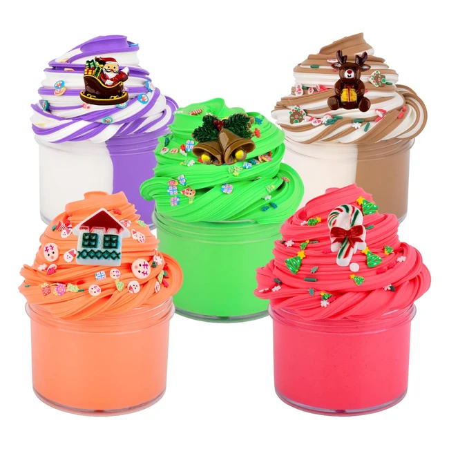 Kelvsbem 5 Pack Fluffy Butter Slime Kit - Soft & Nonsticky - DIY Xmas Slime Toy - Girls Party Favors