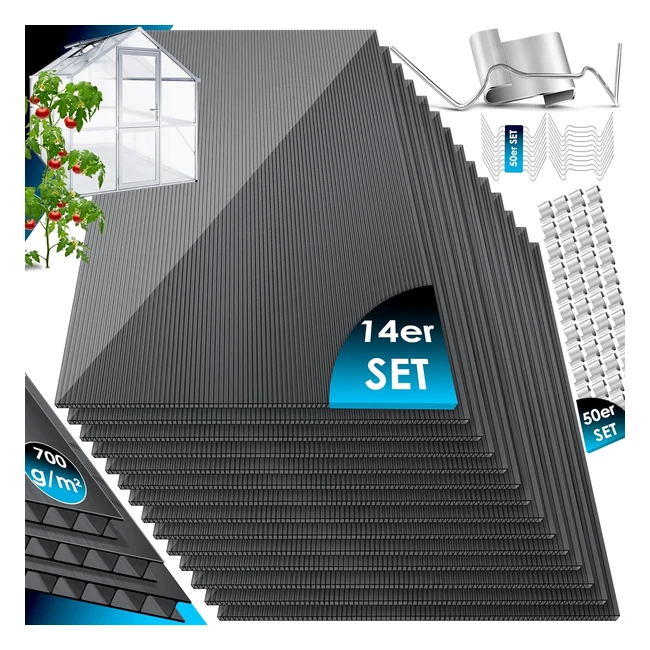 Kesser 14 x Polycarbonat Doppelstegplatten 4 mm 1025 m Doppelwandplatte 121 x 605 cm 50 x Clips 50 x Zclips Mehrwandpaneel Gewächshauspaneel UV-beständig für Gewächshäuser Carports