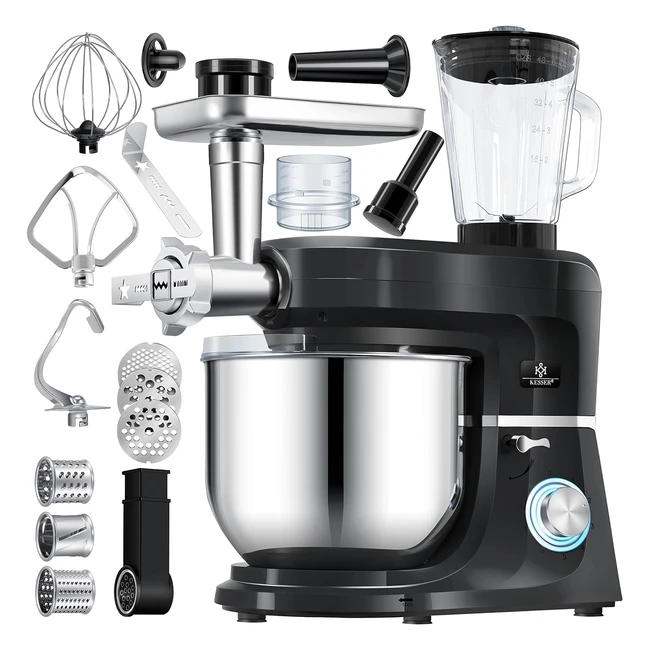 -16%Jetzt zugreifen! Leistungsstark und sicher - Die Kesser 3in1 Küchenmaschine beeindruckt mit 1500 Watt und automatischer Abschaltung bei Überhitzung. Mit 6 Geschwindigkeitsstufen und vielseitigem Zubehör zaubern Sie im Handumdrehen köstliche Gerichte. Die 55L Edelstahlschüssel mit Spritzschutz ermöglicht einfaches Hinzufügen von Zutaten und der rutschfeste Stand sorgt für eine ruhige und sichere Arbeitsweise. Holen Sie sich jetzt die perfekte Küchenmaschine!