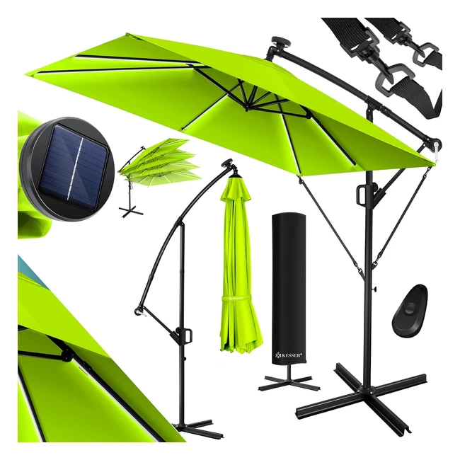 Kesser Ampelschirm Holly LED Solar 350cm hellgrn - Windsicherung, UV-Schutz, wasserabweisend