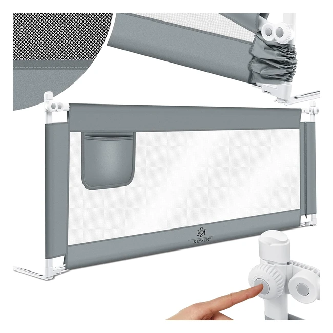 Kesser Bettgitter 150cm - Bettschutzgitter für Kinderbett - Klappbar - Rausfallschutz - Boxspringbett - Grau