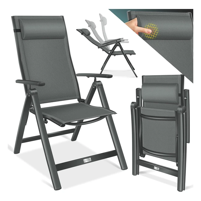 Kesser Gartenstuhl Hochlehner mit Armlehnen Aluminium Klappstuhl inkl. Kissen Campingstuhl 7-fach verstellbare Rückenlehne atmungsaktiv und wetterfest faltbar und rutschfest Anthrazit