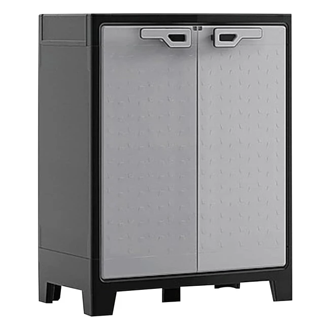 Keter Titan Low Indoor Garage Utility Cabinet Black/Grey - 2 Shelves, Lockable Doors, Durable Resin