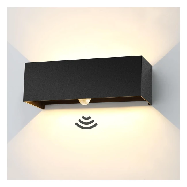 Kingwen Aplique de Pared LED 30W con Sensor de Movimiento Exterior 3000K - IP65 Negro