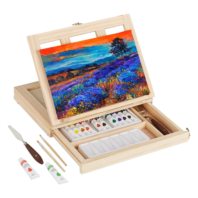 Kit de Pintura Acrílica Relaxdays Mesa Caballete 19tlg - Pinceles y Paleta Ajustable