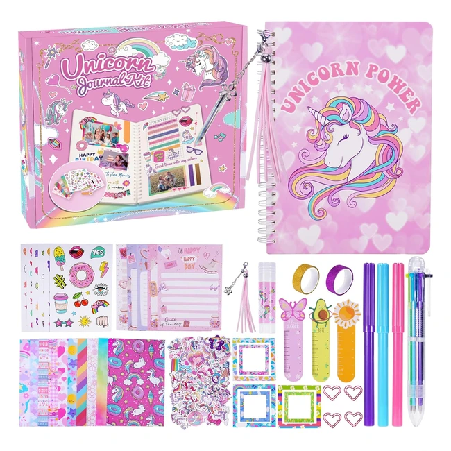 Kit Scrapbooking Completo per Bambina - 50 Adesivi, 10 Scrapbooking, 5 Note, 6 Adesivi, 1 Taccuino, 3 Segnalibri, 4 Mollette, 6 Cornici, 1 Penna, 2 Nastri, 1 Ciondolo, 1 Colla