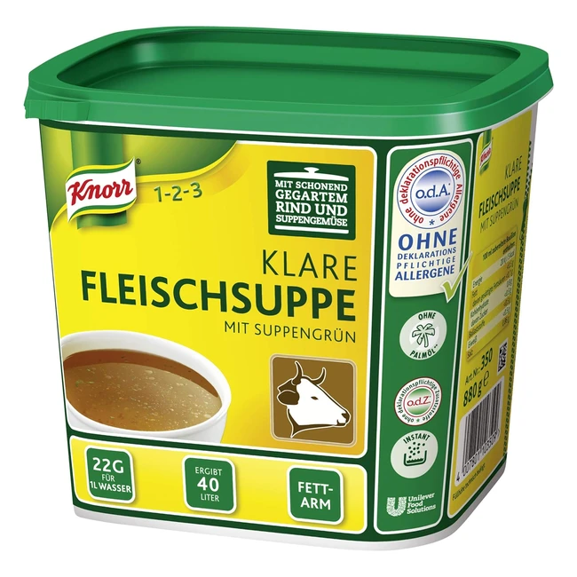 Knorr klare Rindfleischsuppe mit Suppengrün Rindfleischbrühe nach bewährtem Rezept Packung von 1 1 x 0,88 kg
