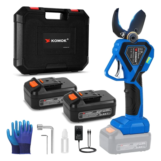 Komok Sécateur Électrique sans Fil 42mm 2 Batteries Rechargeables 25.2V - Professionnel avec Revêtement DLC - Moteur sans Balais 1000W - 810 Heures d'Autonomie - Blue