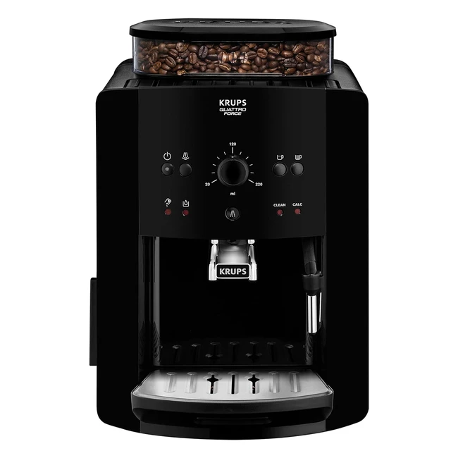 Entdecken Sie den innovativen Krups Quattro Force Kaffeevollautomaten für professionelle Qualität! Großer Wassertank, 3 Temperaturen & Mahlgrade, einfache Bedienung, einzigartige Metall-Brühgruppe für heißen, hygienischen Kaffeegenuss.