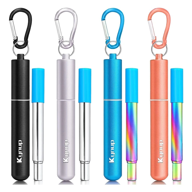 Kynup Metal Reusable Drinking Straw 4 Pack - Portable Collapsible Straws with Case 1810 Stainless Steel - Adjustable Length Up to 23cm 6mm Diameter