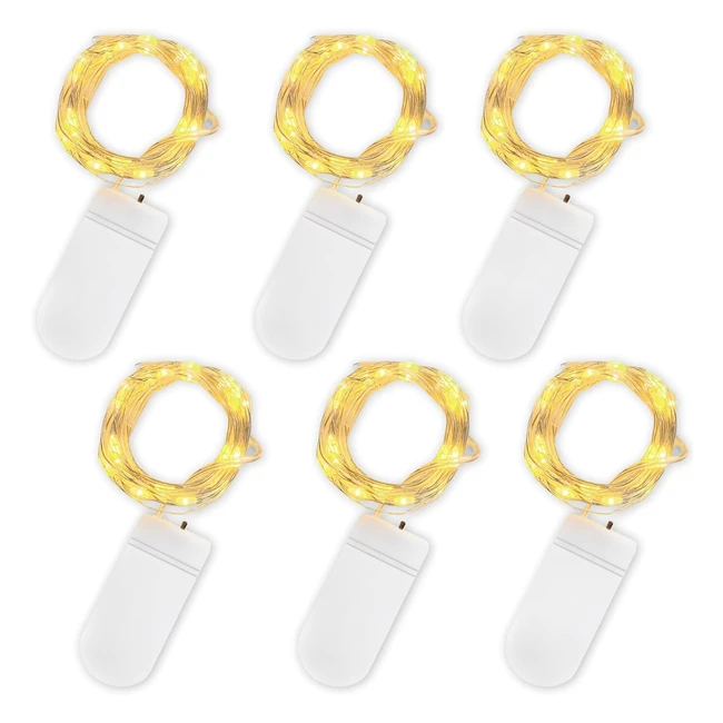 Lampada LED a Batteria 6 Pezzi Impermeabile 20 LED 2m - Filo Rame Bianco Caldo